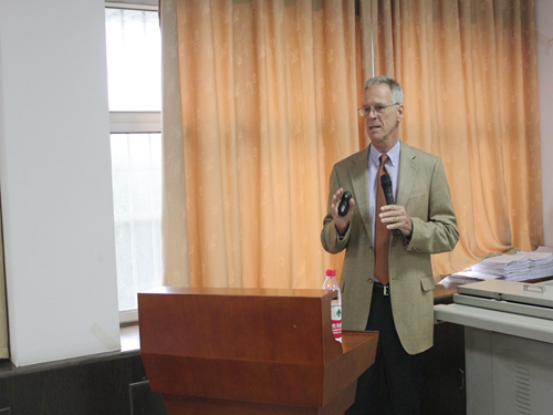 副院长胡向阳教授、副院长苏彩霞教授以及部分刑法、公安专业的老师在文治楼二楼会议室与Claud Davidson先生就“美国反恐机构的结构组成问题”、“不同机构之间的协调配合问题”以及“美国警察如何进行培训”进行了深入交流。