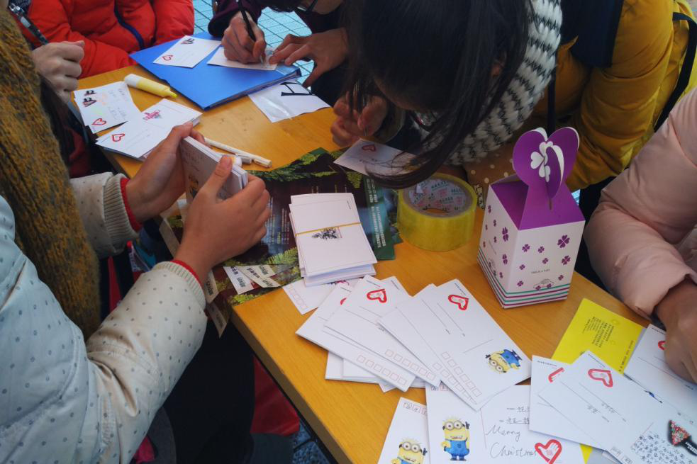 由于活动前期的积极宣传,“免费送贺卡”活动一开始便吸引了许多同学的参与。面对络绎不绝前来填写“圣诞”或“元旦”贺卡的同学,志愿者们皆以笑脸相迎,热心地向同学们一一介绍活动流程,并登记下同学们的具体邮寄信息。经过一下午的紧张忙碌,贺卡的填写,登记,分类工作基本完成。但是,志愿者们顾不得休息,便立即投入到新一轮的志愿服务中去,奔赴到学校的各个宿舍楼将同学们的“祝福”准时,准确地送达目的地。