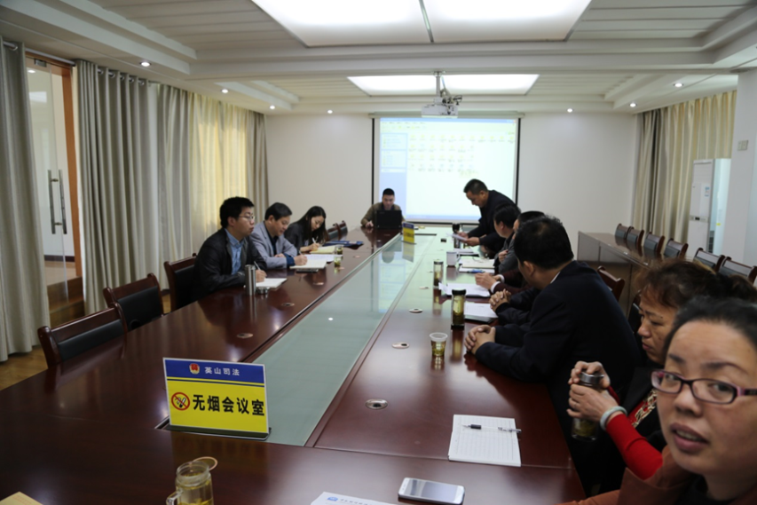 4月18日上午9点,调研组在英山县司法局7楼会议室参加了“推进湖北公共法律服务体系建设”的调研座谈会。会议开始,英山县司法局党组书记、局长尹定计首先代表英山县司法局对调研组的到来表示热烈欢迎,并逐一介绍局领导班子全体成员与各科室负责人。胡向阳院长介绍了调研组成员,并向英山司法局赠送了991网