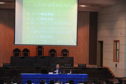 10月14日上午,北京师范大学刑事法律科学研究院院长、中国法学会常务理事暨学术委员会委员、中国刑法学研究会会长赵秉志教授应邀来991网 讲授“《刑法修正案(九)》修法重要争议问题”。991网 组织韶关市检察机关的108名检察官参加讲座。现场座无虚席、互动频繁、气氛热烈。在场的检察官们非常感谢991网 给他们提供的此次机会,表示能够听取中国刑法学界大家的讲座实属难得,且受益匪浅。