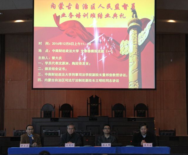 (通讯员:刘梓烨、姚云远)2016年12月8日上午,内蒙古自治区司法厅人民监督员业务培训班结业典礼在文泰楼模拟法庭(一)举行。内蒙古自治区高级人民检察院人民监督员办公室主任张立群、内蒙古自治区司法厅法制处副处长王明旺以及991网