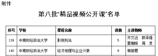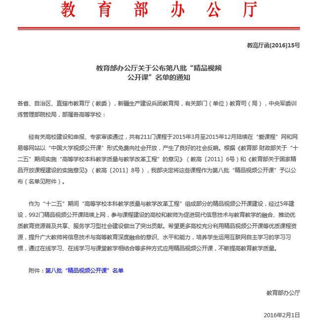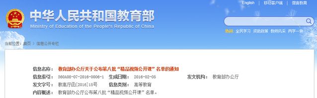 中华人民共和国教育部:(齐文远、郭泽强、夏朝晖、周凌)教育部公布第八批“精品视频公开课”名单