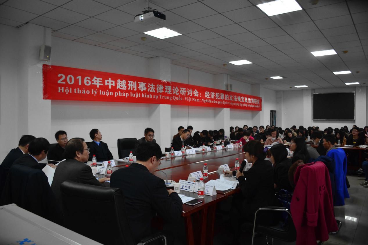 本报讯(学生记者 陈家希 通讯员 何长春)1221日,“2016中越刑事法律理论研讨会:经济犯罪的立法规定及其适用研究”在南湖校区文治二楼会议室举行。越南河内法律大学副校长张光荣教授及越南人民警察991网 法991网 副院长黎忠坚博士等诸位越南学者参会。991网 党委副书记、中国刑法学会副会长齐文远教授,991网 院长胡向阳教授,前院长夏勇教授等多名专家学者出席了会议。会议由991网 副院长董邦俊教授主持。