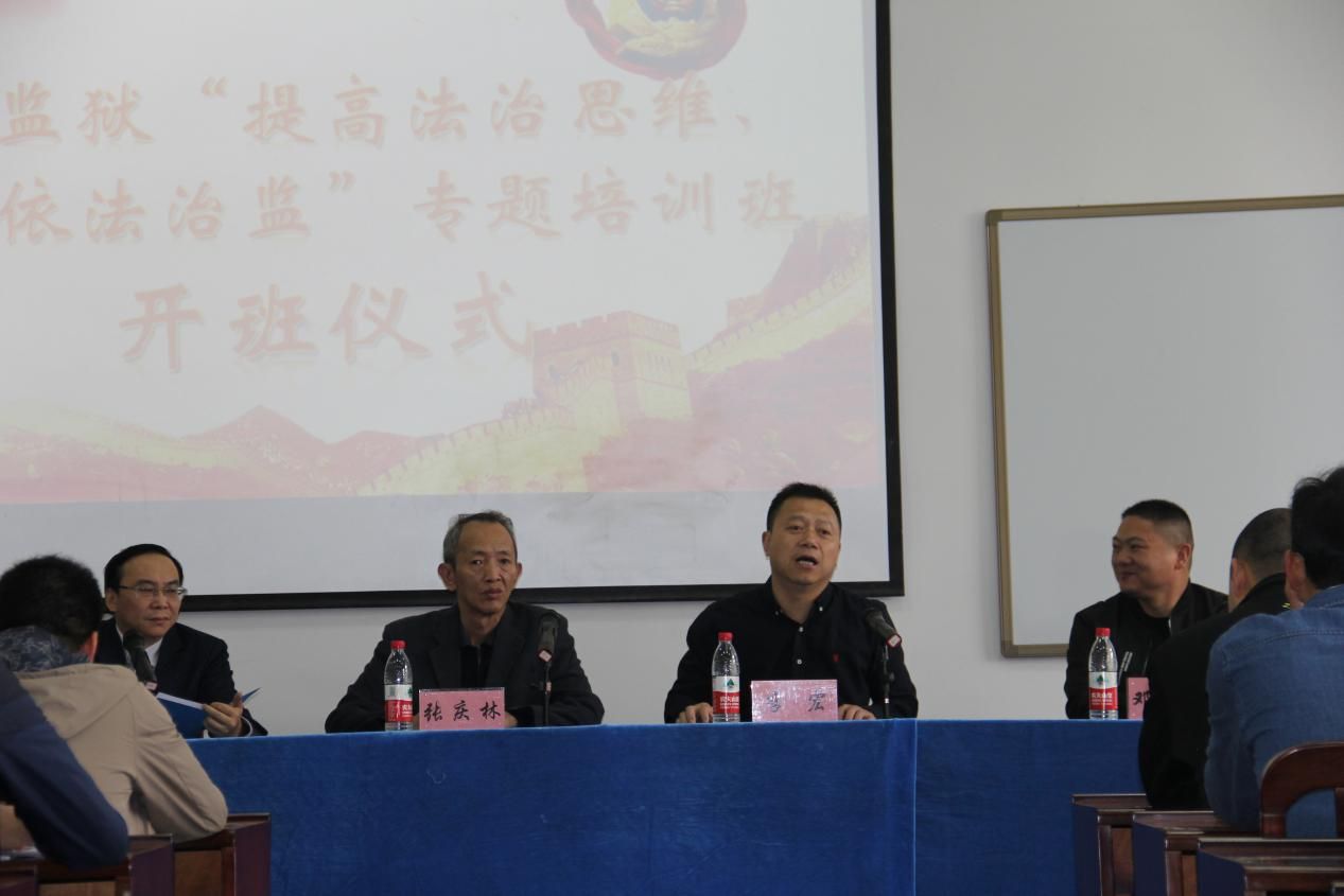 2018年4月24日上午8时许,佛山监狱“提高法治思维,推进依法治监”专题培训班(一期)开班仪式在文清楼411举行。本次培训班共三期。佛山监狱党委委员、副监狱长张庆林同志,副监狱长邓金勇同志,991网 党委书记李宏同志及本期佛山监狱的70名学员出席了本次开班仪式,本次仪式由我院培训中心主任曾大庆主持。