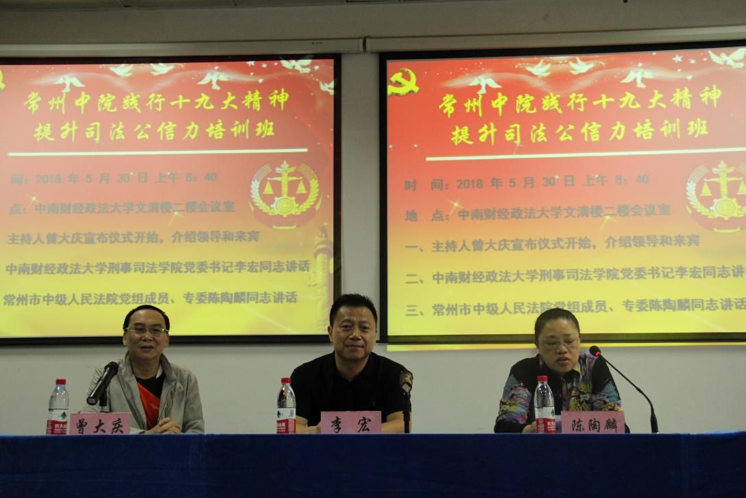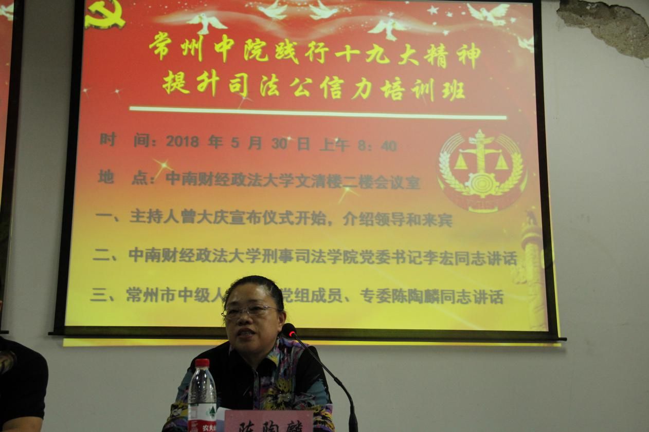 主办的常州市中级人民法院践行十九大精神,提高司法公信力培训班开班仪式在文清楼二楼会议室举行。