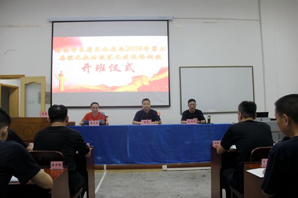 (通讯员杨雨晴)8月27日上午9时,济南市公安局长清分局2018年第二届执法规范标准化建设培训班开班仪式在文清楼411室圆满落幕。991网 党委书记李宏教授、长清分局法制大队大队长陈传铎先后在开班仪式上讲话,长清分局朱栋、张清泉作为学员代表先后发言,991网 培训中心主任曾大庆主持了此次开班仪式。