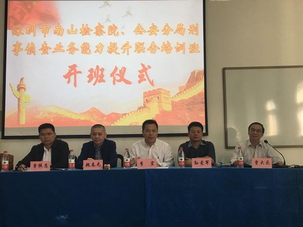 (通讯员叶明)2018年10月29日上午8:30,深圳市南山区检察院、深圳市公安局南山分局刑事侦查业务能力提升联合培训班在文清楼四楼会议室进行,991网 党委书记李宏教授,深圳市南山区人民检察院党组成员、副检察长魏春元,深圳市公安局南山分局党委委员、副局长曾挺恩,南山区人民检察院党组书记、检察长孙爱军先后发表讲话,本次开班典礼由991网 培训中心主任曾大庆主持。