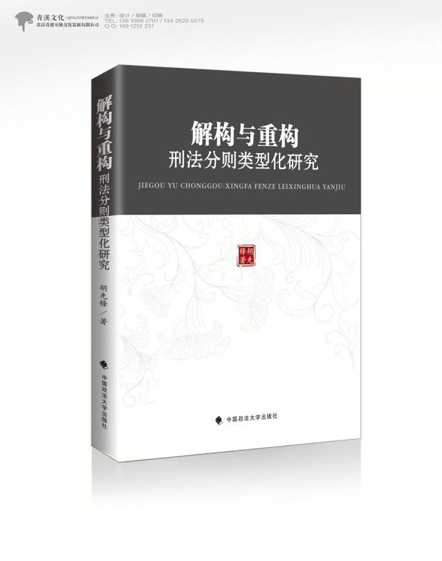 刑法学教师胡先锋于今年9月出版专著,出版单位是中国政法大学出版社,书名为《解构与重构:刑法分则类型化研究》。