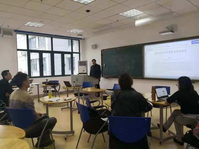 博士生导师董邦俊教授在文澴230教室为侦查学2018级博士生讲授“新时代公安刑事执法理念”课题。