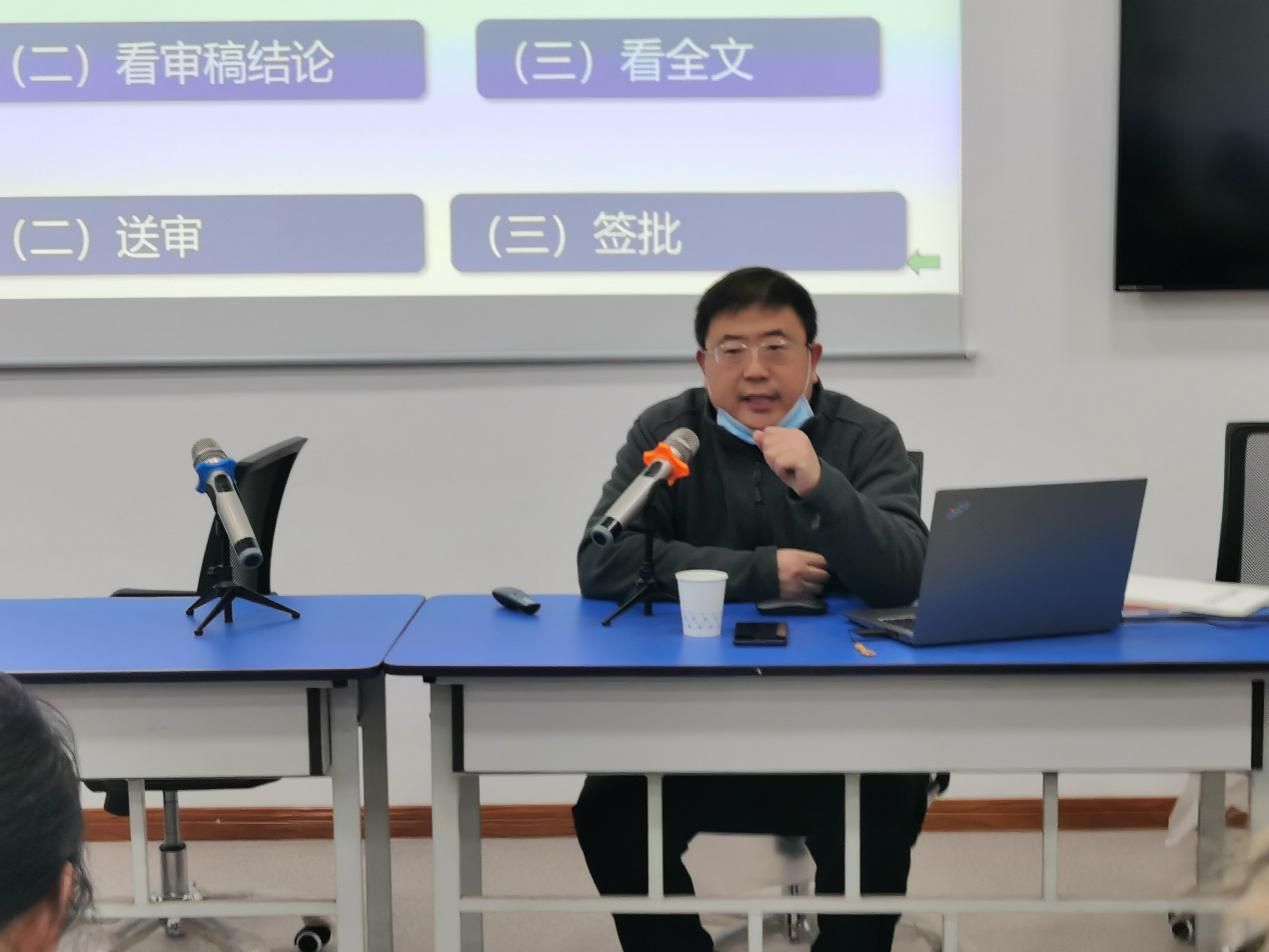 紧接着,刘冲教授以编辑的视角、从正反两个方面揭示了当下公安学学术论文写作存在的现实问题,如选题研究价值和创新性不足、题目拟定不简练、题文不符、摘要和关键词过于笼统、论文语言表述不严谨等,并提出了具体详实的修改建议。为帮助同学们更好的理解和掌握论文撰写方法,刘教授还以多篇文章举例,细致地教大家如何避免这些易犯的错误。刘教授还重点针对研究生学位论文,剖析了好评与差评论文的区别,提醒同学们要把握好学术论文的政治原则。此外,刘教授还勉励同学们相信文字的力量,多积累,学会站在巨人的肩膀上看问题,把专业领域内前辈们的研究成果吃透,才能真正在研究内容和研究方法上有所创新。