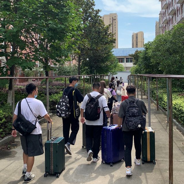 图:同学们前往麻城理工学校宿舍