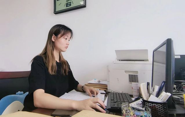 图:冯屾同学在岗位上熟悉工作