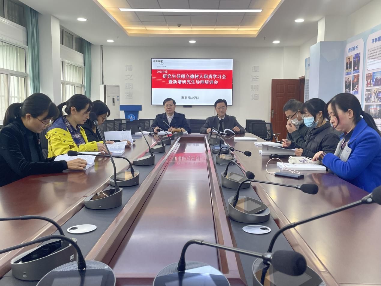 2021年度研究生导师立德树人职责学习会暨新增研究生导师培训会在文治楼二楼会议室举行。院党委书记张志刚,五位新晋硕士生导师梁艳艳、杨敏、徐惠、牟丽、许辉参与了本次培训会,会议由副院长董邦俊教授主持。