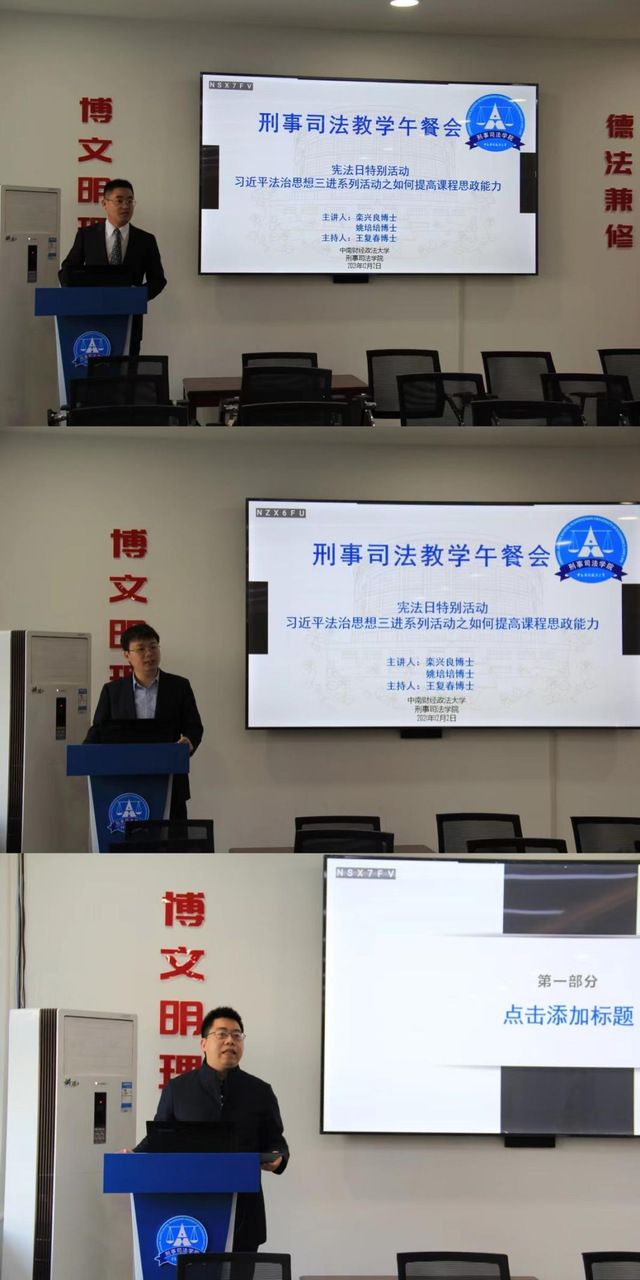 举办了首次教学午餐会。会议的主题聚焦专业教师如何提高课程思政能力,特别是财经政法高校如何将习近平法治思想进教材、进课堂、进头脑,从而构建两翼并进的课程建设模式。据悉,这是该院继在学校首创学术午餐会后,又推出旨在增进教师交流繁荣学科建设的另一个重要创新平台。