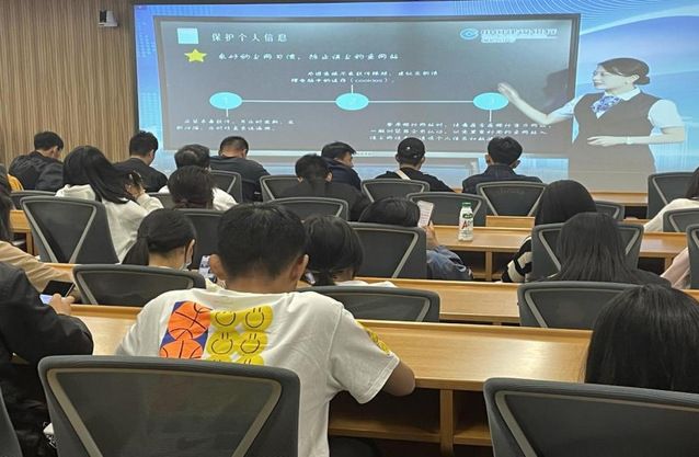 第二部分是听取“金融第一课”。参观完“金融教育示范基地”后,同学们来到位于场馆附近的阶梯教室。学生们分别从“守护你的金融信息”、“越贷越烦恼”、“正确防范电信诈骗”三个方面进行学习。本次学习不仅使同学们对金融常识有了更全面地认识和了解,更激发了同学们对金融理论深入探索和研究的兴趣。