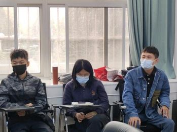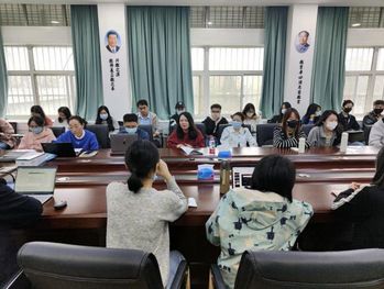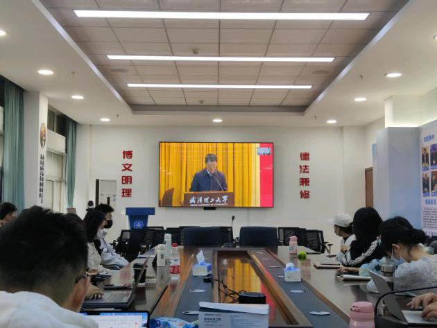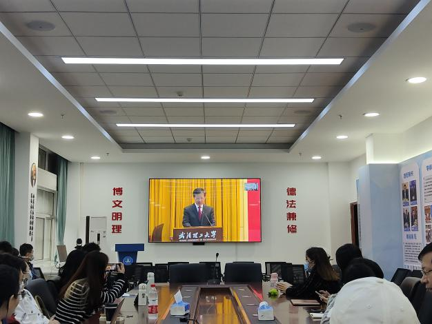 师生以网络视频方式在文治楼会议室集中收看报告会并于会后开展讨论。