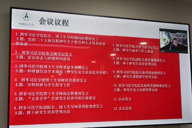 最后,焦俊峰教授详细讲解了研究生实习实践管理办法,并表示应贯彻落实文件规定,学生要在公检法机关积极参加足够的社会实践,同时导师要做好监督管理,在日常工作期间也可带领学生学习,形成师生共同注重实践的良好风气。