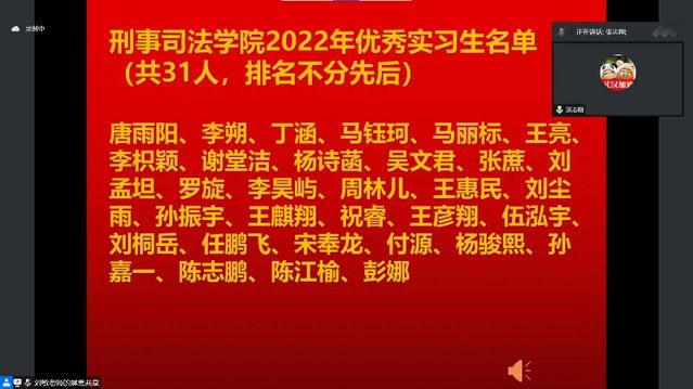 会议中,院党委书张志刚宣读了表彰2022年优秀实习生的决定。他肯定了各位实习生收获的成果,向共同做出努力的各个实践基地和991网的领导老师以及324名实习生致以崇高的敬意。