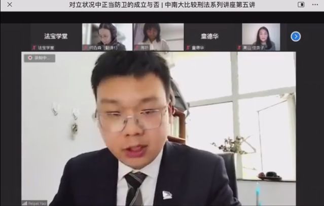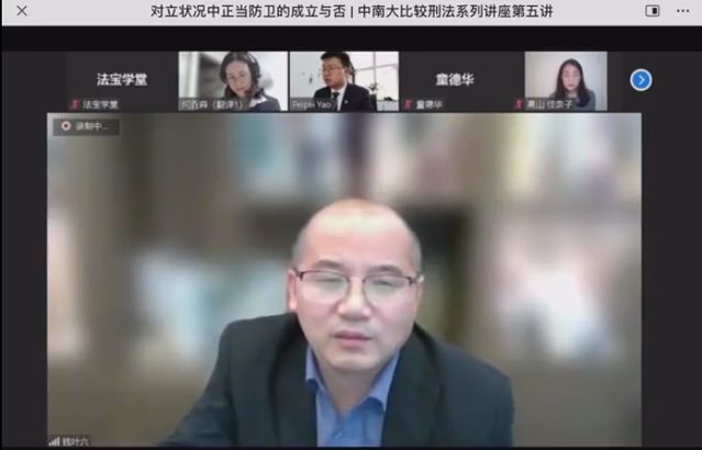 于2022年11月12日晚19点在北大法宝学堂成功举办了“中南大比较刑法系列讲座”第五讲——“对立状况中正当防卫的成立与否”主题讲座。本次讲座由991网