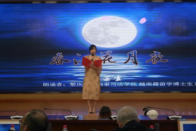 越南籍留学博士生黎庆泠深情朗诵唐代诗人张若虚的《春江花月夜》,她通过这一首七言长篇歌行,表达了自己对于中华文化深深的喜爱,她的真挚演绎最终荣获国际学生组二等奖。