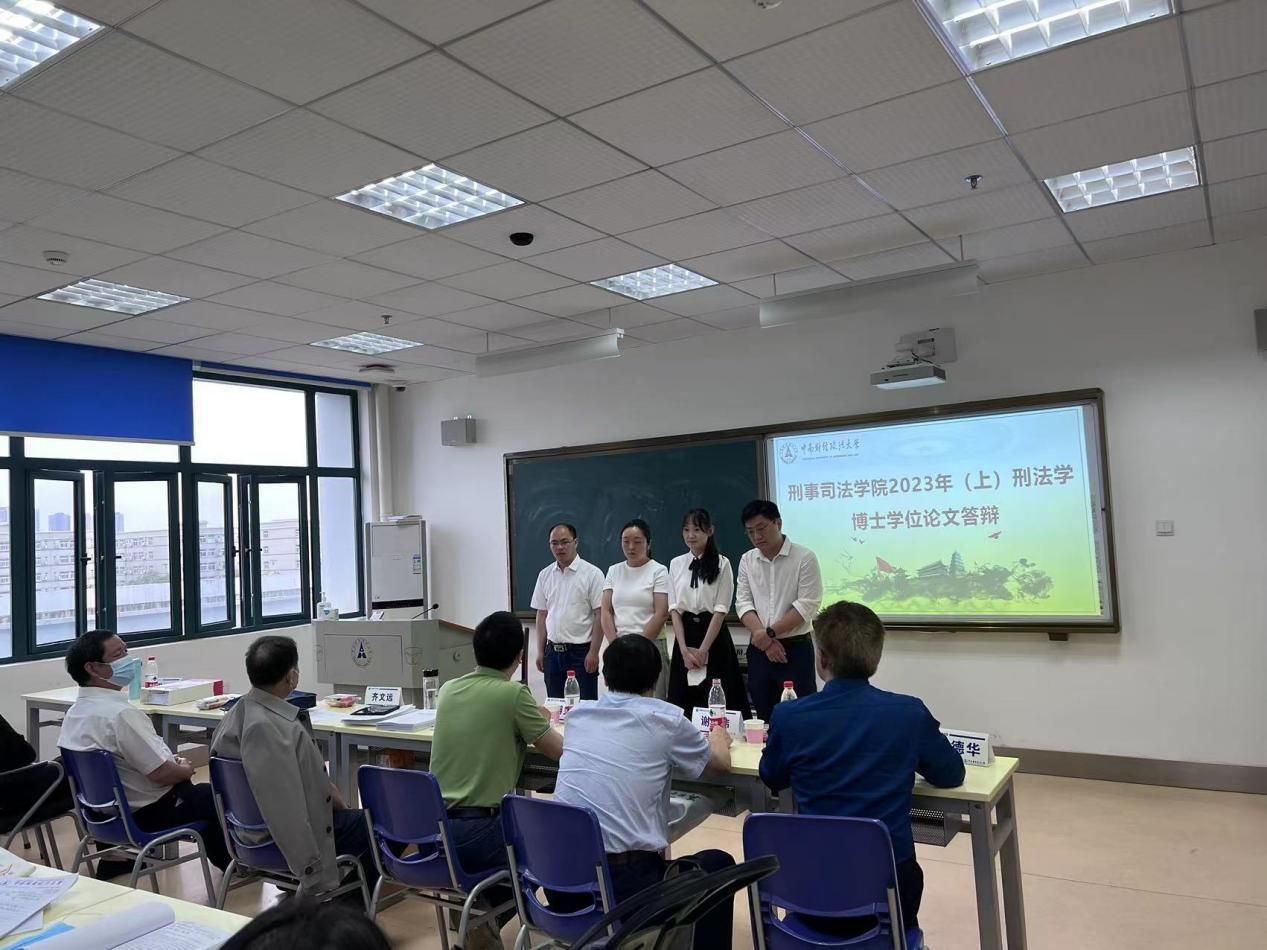 夏勇教授、王良顺教授、周详教授、魏汉涛教授担任答辩委员会委员。翟艺丹、牙韩选、刘纯燕三位博士生依次进行答辩。此外,部分刑法学硕、博士生参加了旁听。