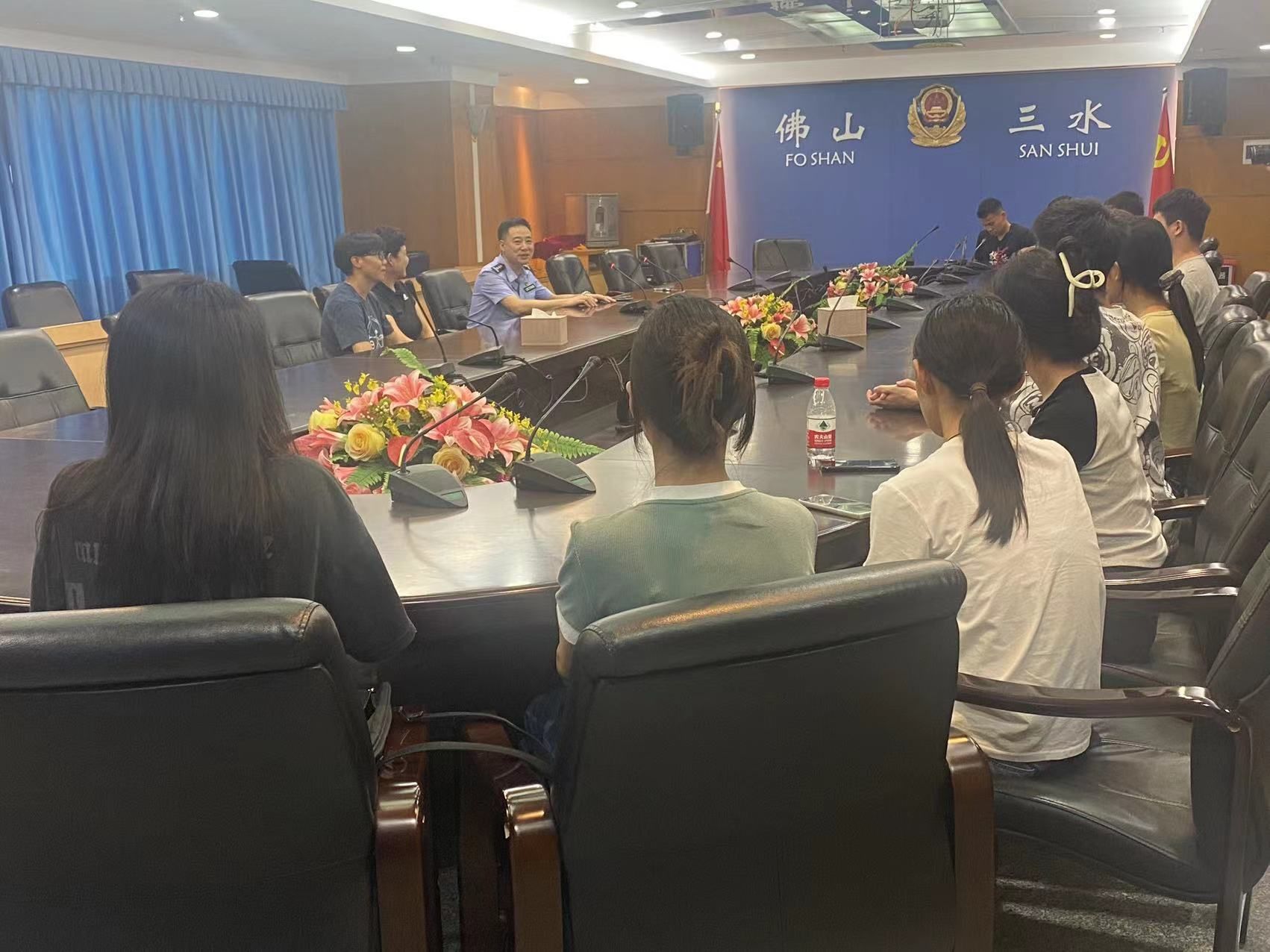 的实习生在实习指导老师夏朝晖、黄洪波和丁友勤的带领下,出发前往广东省佛山市三水公安分局,开启为期40天的实习。