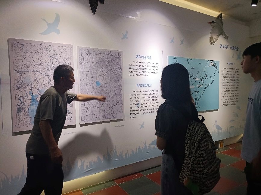 水乡园林,候鸟天堂,第三站我们来到湖北返湾湖国家湿地公园。群群叶子裹着荷泛着红晕,只一瞬饱胀破裂而开,于是铺天盖地的接天莲叶无穷碧,映日荷花别样红,所有生命茁壮、奔放、超乎想象。潜江返湾湖国家湿地公园被誉为“候鸟天堂”,有国际极危物种青头潜鸭、国家二级保护野生动物白琵鹭等多种保护动物。我们参观了展馆后,到三楼通过高清望远镜欣赏了远处展翅的白鹭、躲藏在树丛中的飞鸟,倾听天地万籁,亲近自然之美。这片亚热带天然的湿地是鸟类理想的栖息地,也是潜江境内观鸟的天堂。