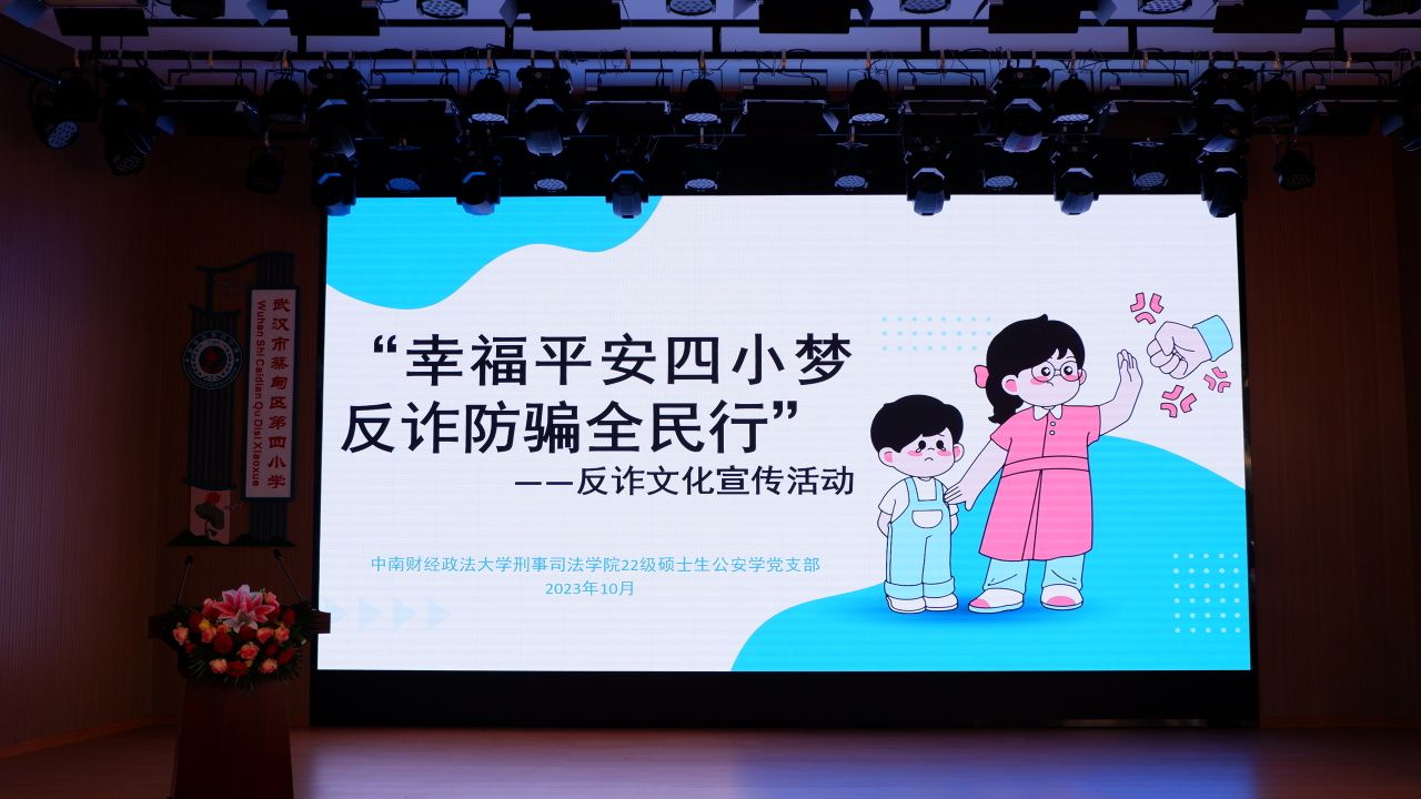 近年来,电信网络诈骗案件花样百出,并逐渐向校园蔓延。为切实保护在校学生的人身财产安全,全力营造平安和谐的校园环境,提高学生识诈、防诈、反诈的意识和能力,10月31日下午3时,991网 2022级硕士生公安学党支部党员及入党积极分子前往武汉市蔡甸区第四小学开展“幸福平安四小梦,反诈防骗全民行”反诈文化宣传活动,为学生们带来了一堂生动有趣的“反诈课”。