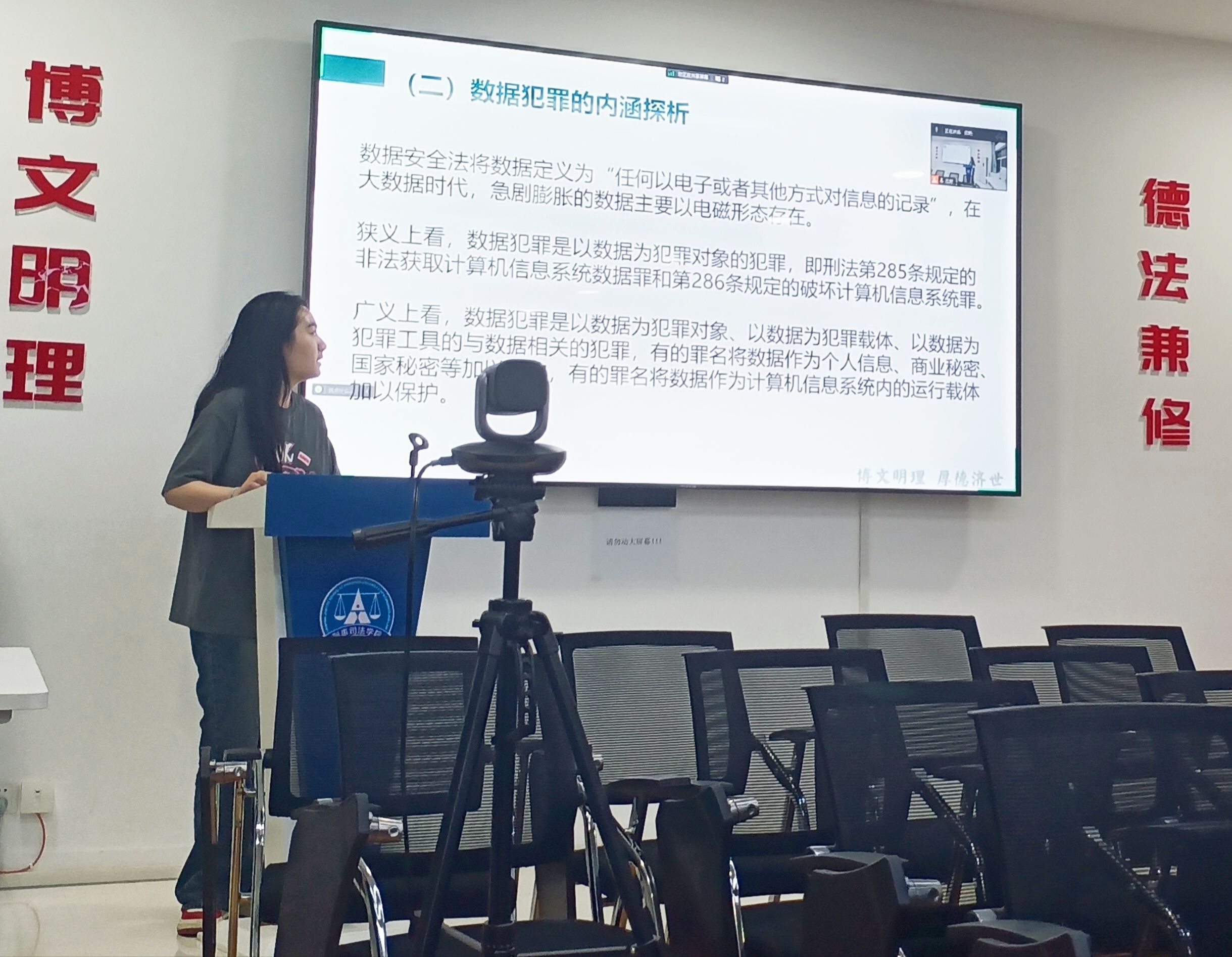 教师点评环节,闫平教授指出研究这个主题需要把握好两个点,一个是数据犯罪的概念,另一个是同一认定的要素,而且要考虑该研究是否切合实际的问题。