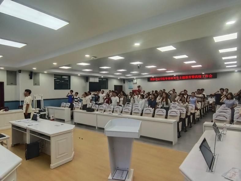 6月21日下午,硕士生2021级刑法学党支部和公安学党支部于文泰楼模拟法庭二开展毕业生党员专题教育活动暨6月份主题党日活动,本次活动主题是严守党的“六大纪律”。991网 党委书记张志刚,研究生办公室主任、辅导员王晓丹,辅导员柯希鹏出席活动。