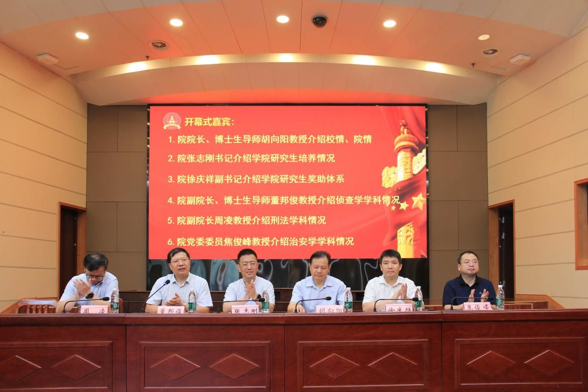 研究生奖助体系;副院长董邦俊教授介绍侦查学学科情况;副院长周凌教授介绍刑法学科情况;院党委委员焦俊峰教授介绍治安学学科情况。