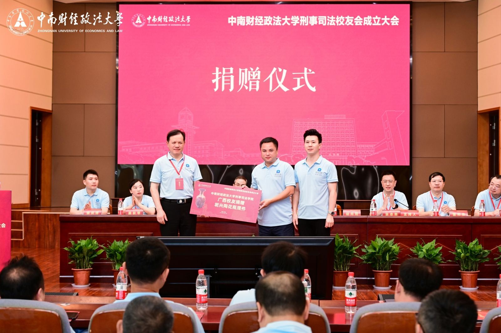 在捐赠仪式上,广西校友向991网 捐赠了精美的坭兴陶花瓶摆件。此外,山西校友和辽宁校友也向991网 捐赠了有关纪念礼品。