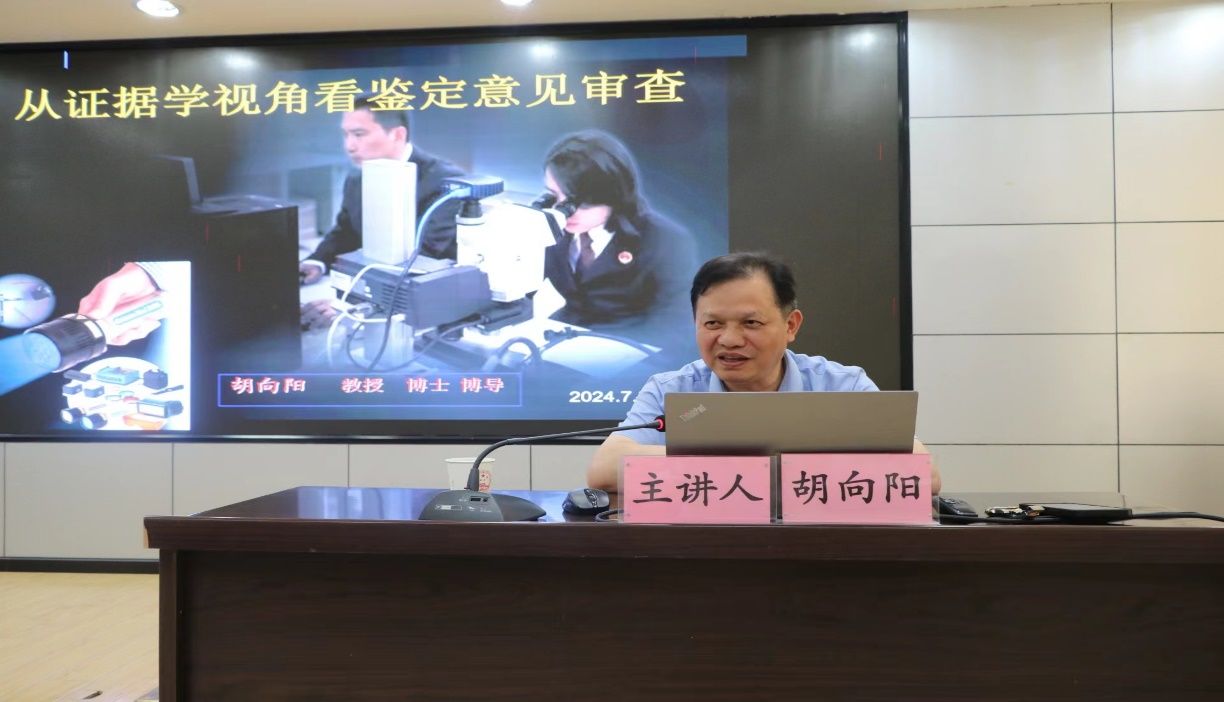 在午餐过后,胡向阳教授受英山县检察院的热情邀请,在检察院的报告厅为大家展开了一堂生动的课程教学。胡向阳教授以《从证据学视角看鉴定意见审查》为题,站在“推动构建完善以证据为中心的刑事指控体系”的高度,围绕形式与内容、检材与样本、鉴定方法的科学性、依据与标准、鉴定意见的性质、排除合理怀疑、夯实证据链、专家证人协助质证等八个方面,向大家介绍了关于鉴定意见质证的前沿理念和实务要点。