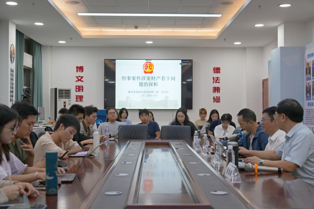 研究生会承办的第314期“文澜大讲坛”之名家讲坛在南湖校区文治楼二楼会议室顺利举行。本次讲座采用线上与线下相结合的方式,以“涉案财产处理研究”为主题,特邀湖北省高院审委会委员、刑一庭庭长官文生主讲,991网