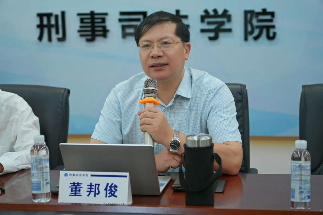 最后,董邦俊教授对官文生庭长的精彩讲授表达感谢,并就本次讲座内容进行简要总结。他认为,本次讲座内容详实,兼具学术价值与实践意义,总结了目前涉案财产处理工作的实践困境与解决路径。他强调,研究工作应紧密结合实践,从具体规范上升到理性分析的高度,并鼓励学生们从多学科角度出发,深入探究问题。