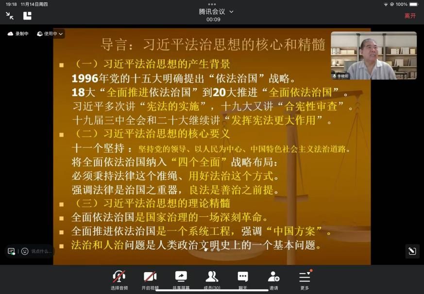 新闻网讯(学生通讯员 欧阳欣诺 摄影 孙惟安)11月14日19时,“习近平法治思想指引下的犯罪治理问题研究”主题学术讲座在991网