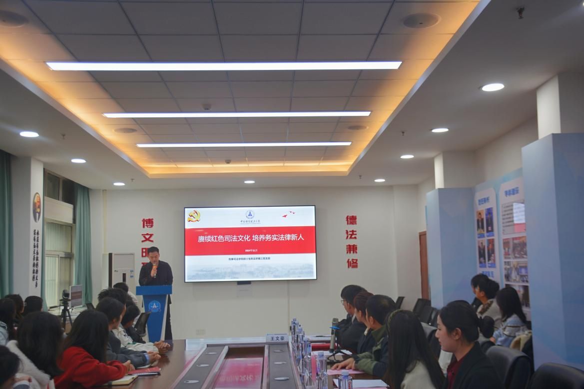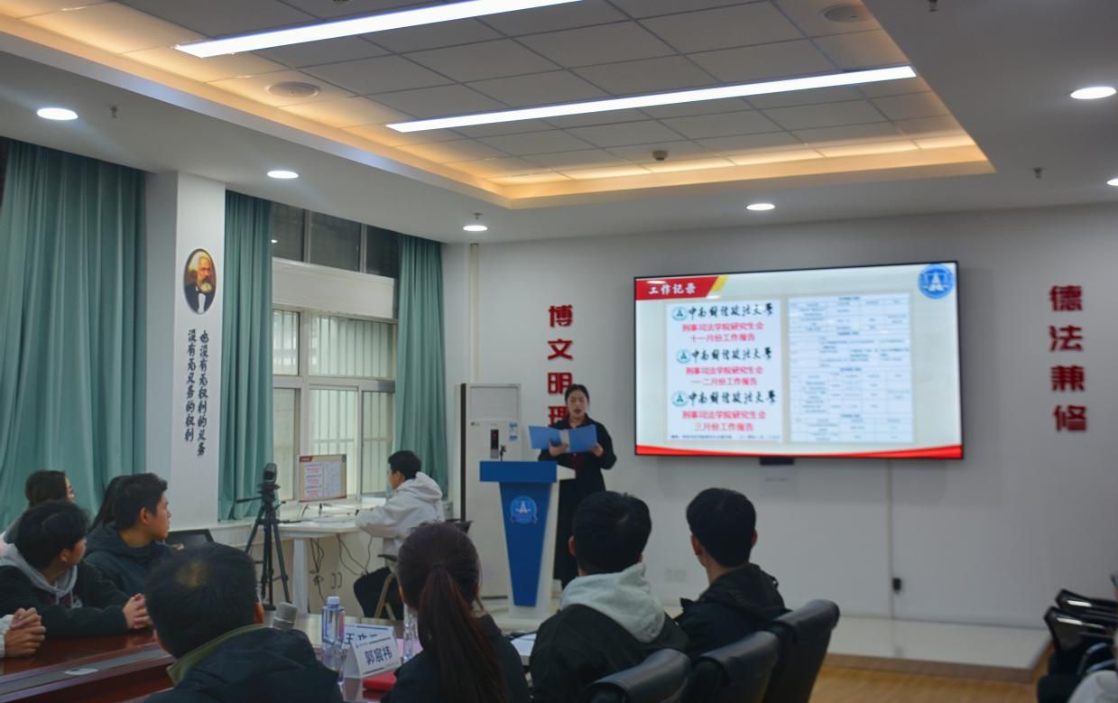2023级刑法学第三党支部书记潘宁做校级研究生样板党支部工作汇报。潘宁以“赓续红色司法文化,培养务实法律新人”为主题,用精炼的语言汇报了支部的创建工作。他介绍了支部的基本情况,深入阐述了支部在赓续红色司法文化方面的具体做法和取得的成效。