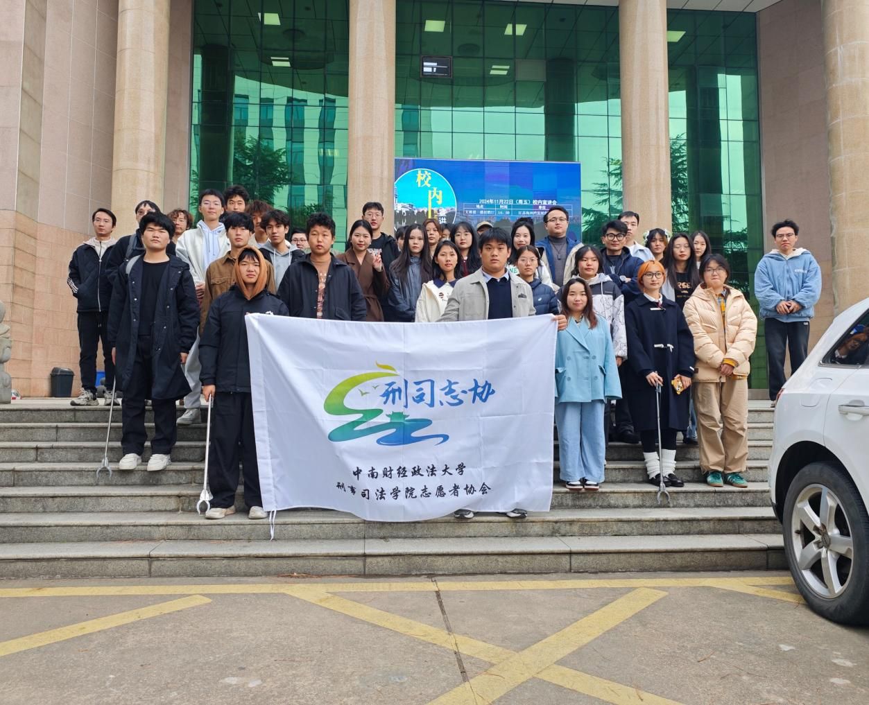 13时,志愿者们携带着各类清洁工具在文治楼前集合。合照完成后,大家在活动负责人的带领下有序出发。志愿者们沿着中南大道和中区主干道路,认真细致地投入到各自的清洁工作中。志愿者们清扫了校园里的每一块草地、每一片树荫、每一处死角,细致入微地对校园环境进行优化。饮料瓶、垃圾袋、枯叶烟蒂、果皮纸屑等各类垃圾很快便被志愿者们清扫干净。大家分工合作、各司其职,同时又紧密配合、并肩作战,展现出刑司学子良好的精神风貌与工作态度。