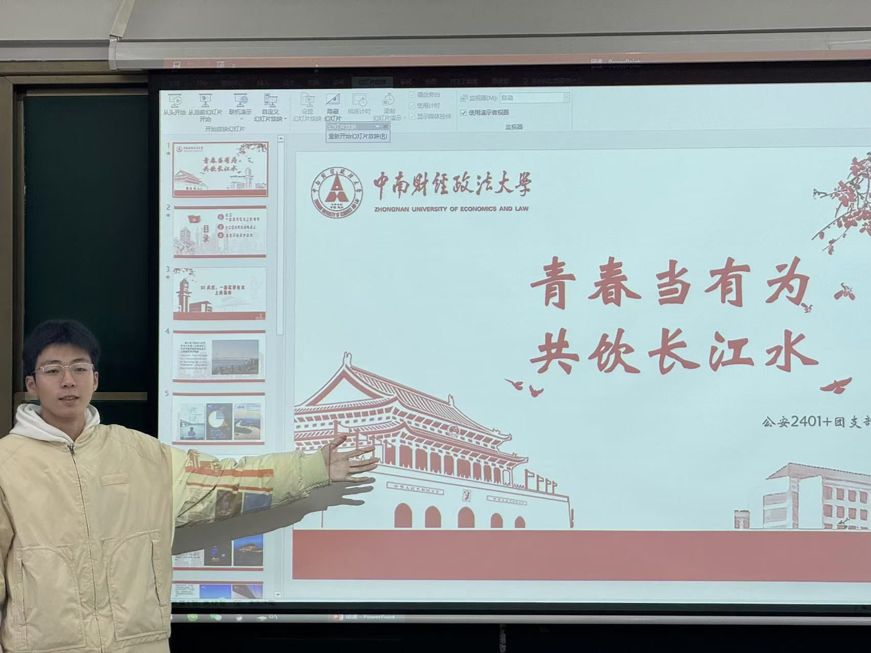 新闻网讯(学生通讯员 胡炜韬)12月9日,公安2401团支部于文泰401教室开展了以“青春当有为,共饮长江水”为主题的团课。