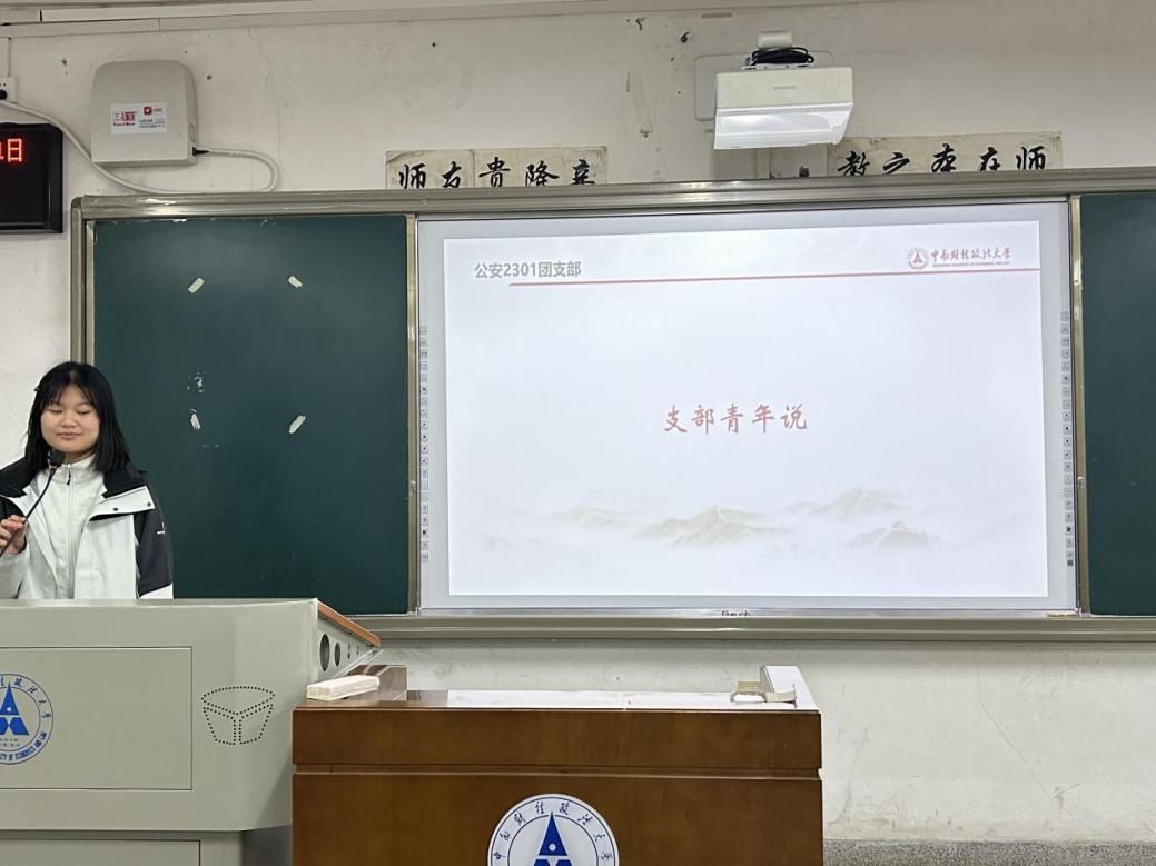 活动第四项,为充分发挥支部成员的主观能动性,公安2301红旗团支部充分结合自身特色,开展了第二期“支部青年说”专题系列微团课,鼓励大家从身边事入手讲个人家国情怀,讲祖国发展成就,讲伟大时代精神,讲未来美好憧憬,让支部团员青年在“青”言“青”语的朋辈讲述中,坚定“青年志”,点燃“青年梦”,践行“青年行”。本期活动由团支部成员岳蕾静同学进行分享。