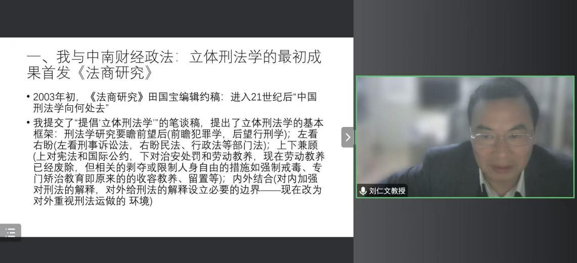 此外,刘仁文教授还分享了近期的感悟与展望,他提到《量子思维》中量子思维与立体刑法学的立体思维、关系思维、辩证思维和系统思维相契合,认为在不确定的时代,刑法学人应秉持立体刑法学的包容、多维、中庸的立场,把自身的主体性融入刑法学术共同体,朝着建立刑法通说的方向努力,为社会治理贡献刑法学界的集体方案。