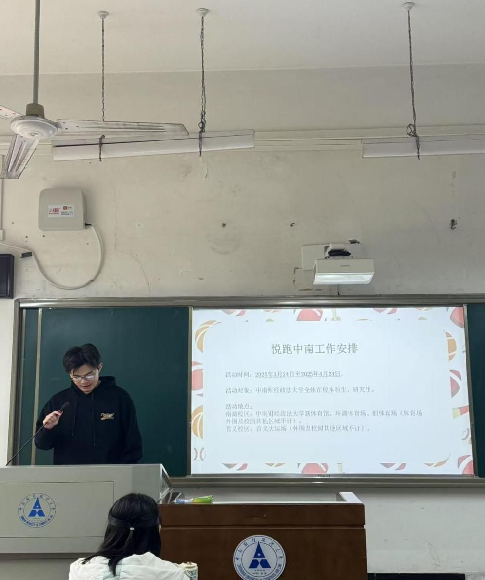 会议第三项,院学生会体育部负责人蔡伊忍对本学期春季体育工作进行安排,主要围绕2025年“悦动青春”体育系列活动展开,提出了对本学期体育部举办活动的具体要求和展望。他希望体育部干事们真抓实干,以更饱满的热情和更高昂的斗志向着既定的目标前进。