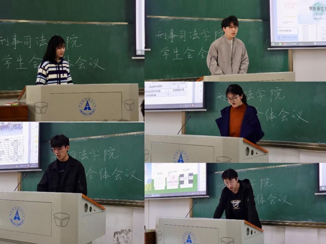 会议第二项,学生会各部门负责人对本部门上学期工作进行述职报告。秘书处负责人汪宇航、权益联络部负责人张源桐、外宣部负责人岳蕾静、文艺部负责人苗亚楠、体育部负责人赵金金依次上台做述职报告。过去一学期,991网
