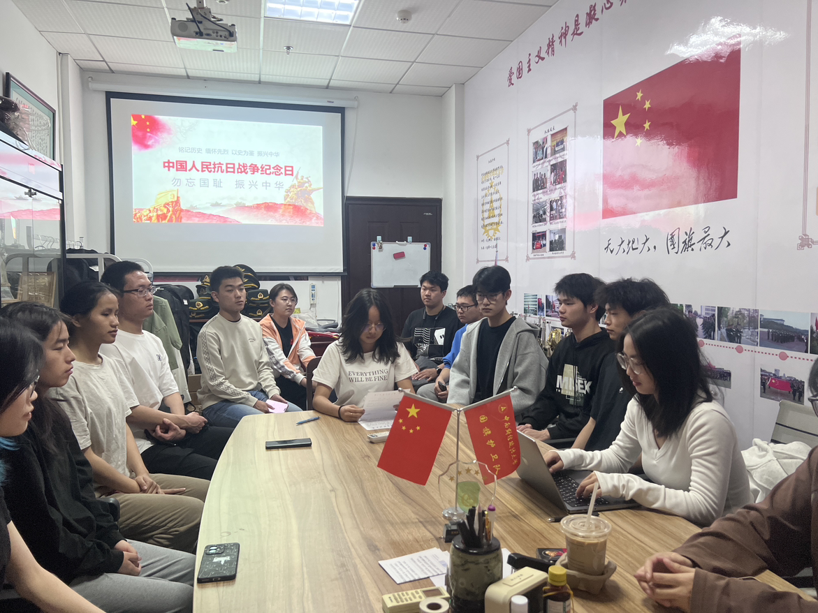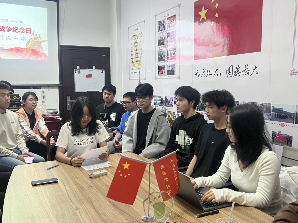 国旗护卫队功能型团支部于2024年9月5日在文治楼一楼会议室召开“铭记抗战历史,传承抗战精神”主题团日活动,全体队员参加会议,队长李熠彤担任主讲人。