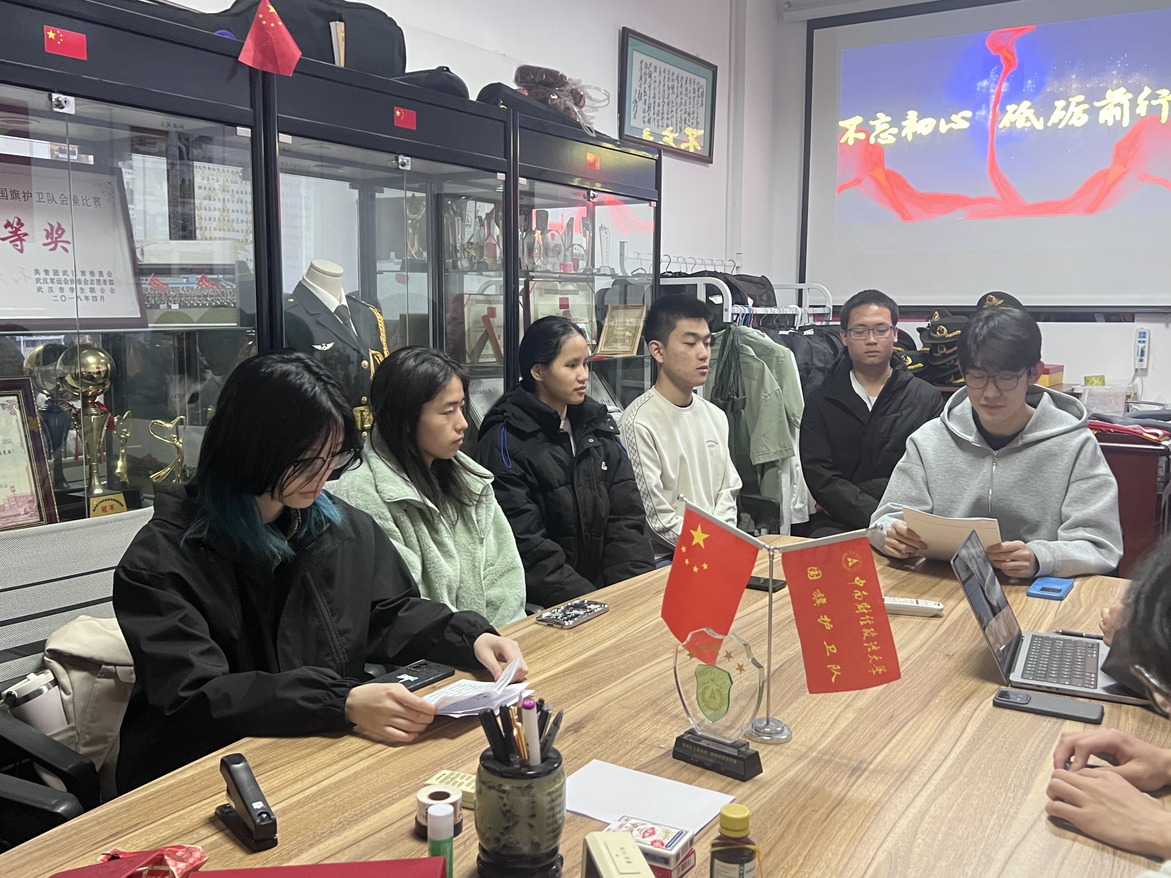 国旗护卫队功能型团支部在文澜楼召开“总结过往,展望未来”主题团日活动,全体队员参加会议,支部委员李逵灿担任主讲人。