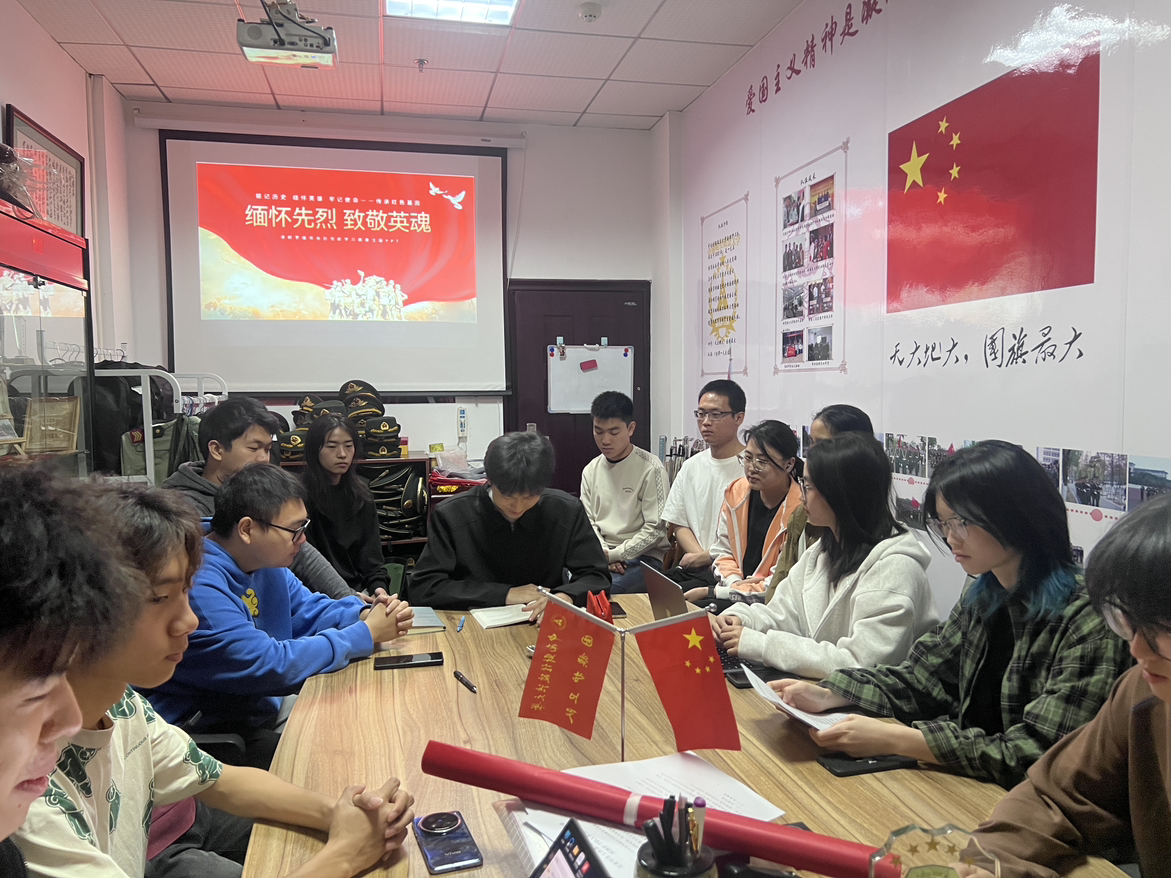国旗护卫队功能型团支部于2025年4月1日在文治楼一楼会议室召开“缅怀英烈,铭记革命精神”主题团日活动,全体队员参加会议,功能型团支部书记赵俊尧担任主讲人。