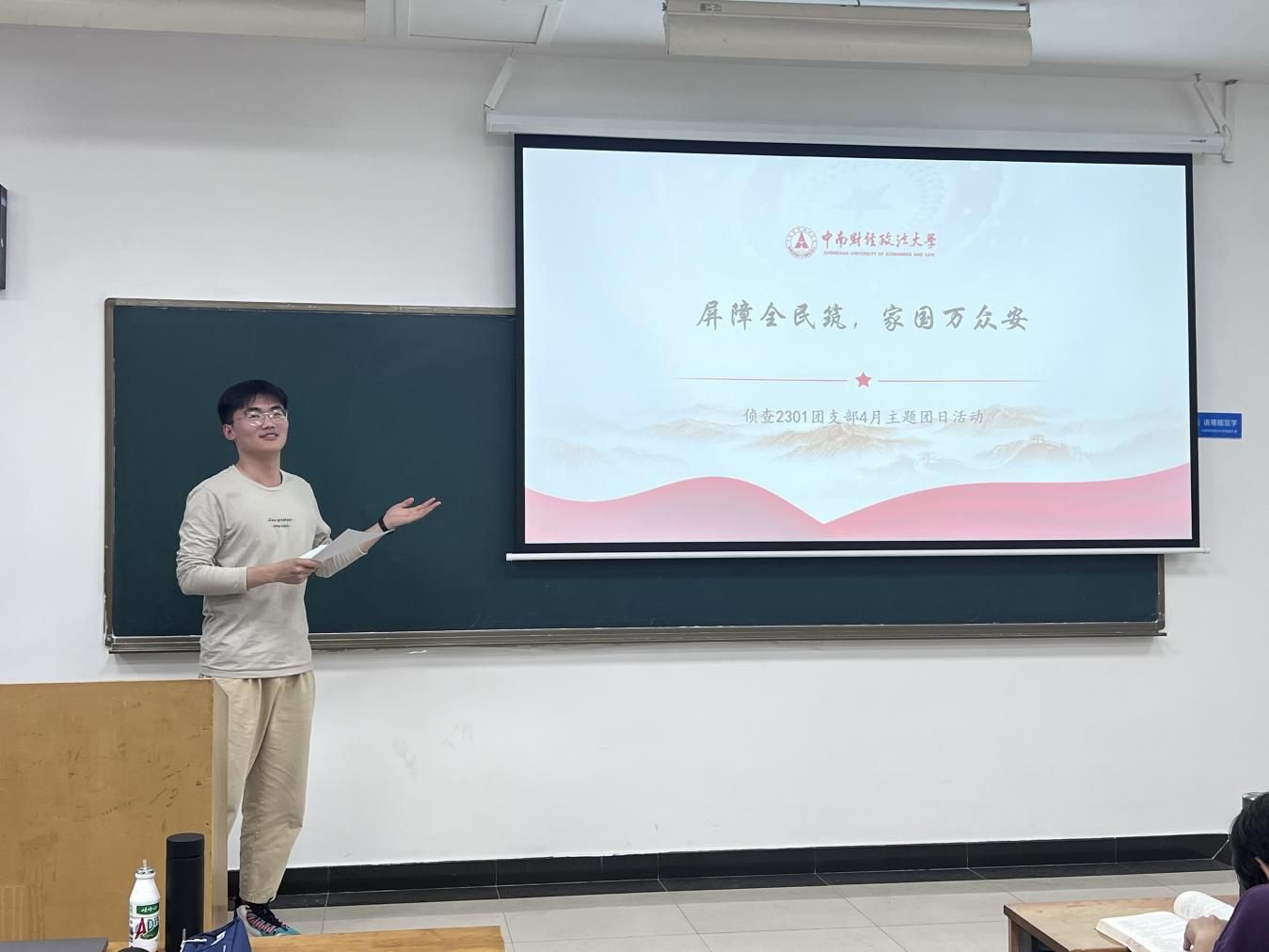 新闻网讯(学生通讯员 李博宇)为深化青年对国家安全内涵的理解,增强国家安全意识,侦查2301团支部于4月15日在文泰108组织开展了“屏障全民筑,家国万众安”主题团日活动。
