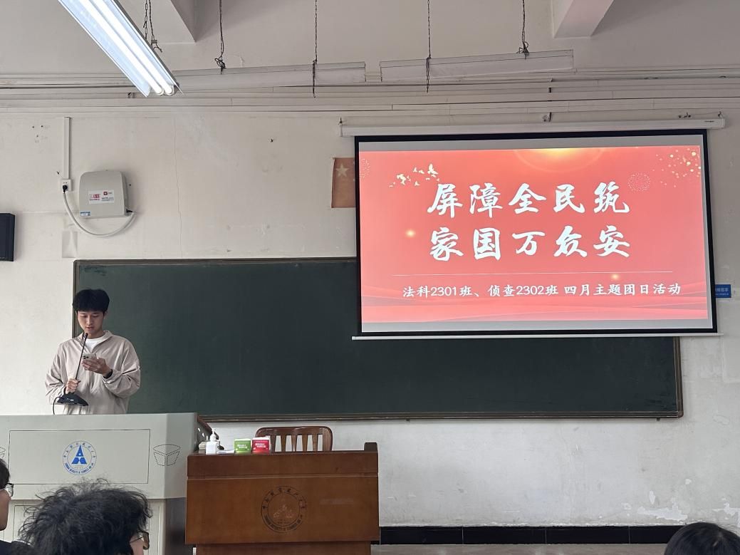 法科2301班、侦查2302班联合举办“筑牢安全屏障,共护家国平安”四月主题团日活动。活动通过案例解析、视频展播、互动演练等形式,引导同学们增强国家安全意识,践行青年责任。