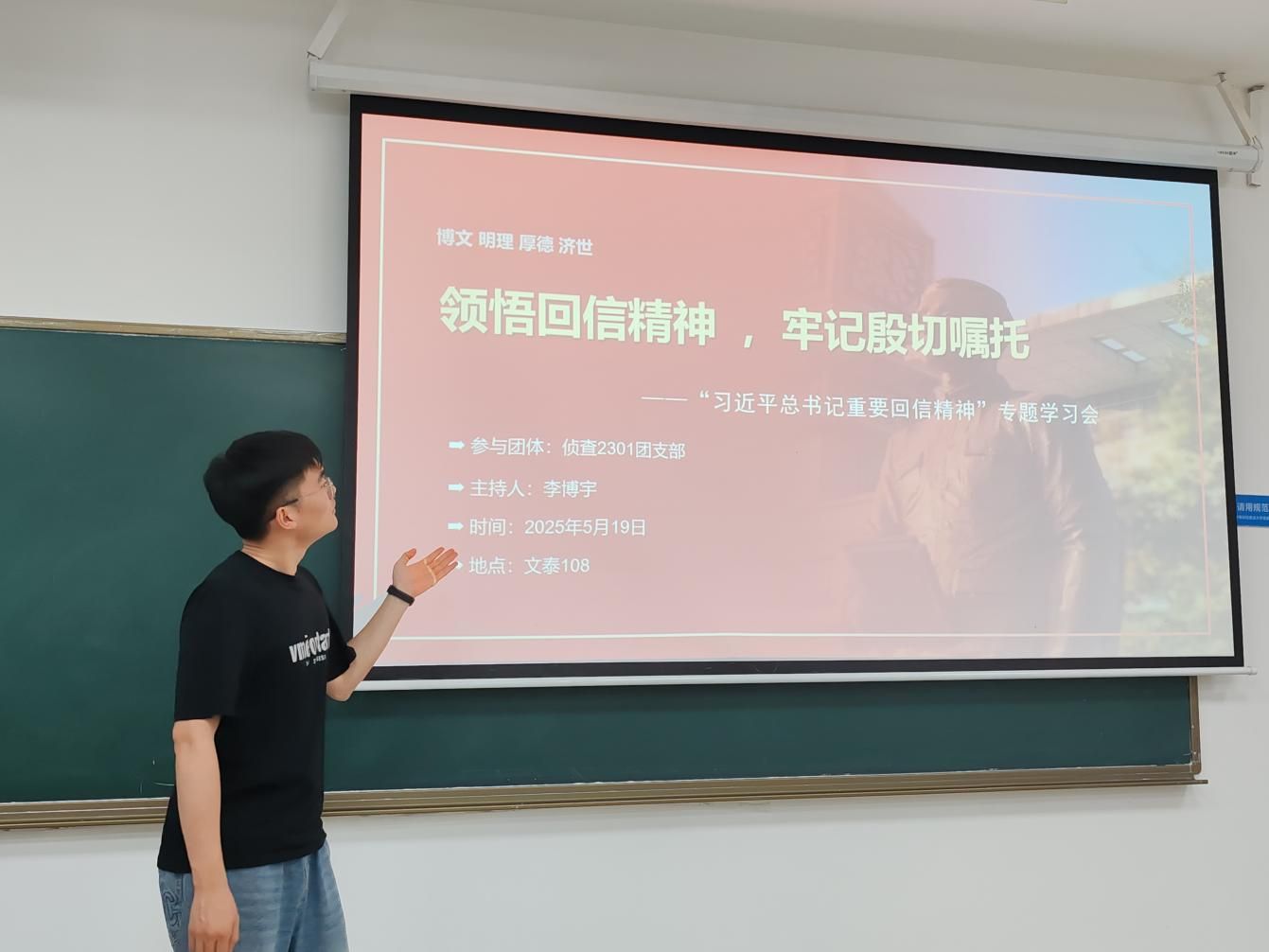 新闻网讯(学生通讯员 李博宇)在五四青年节到来之际,侦查2301团支部于5月19日召开“领悟回信精神牢记殷切嘱托”专题学习会。