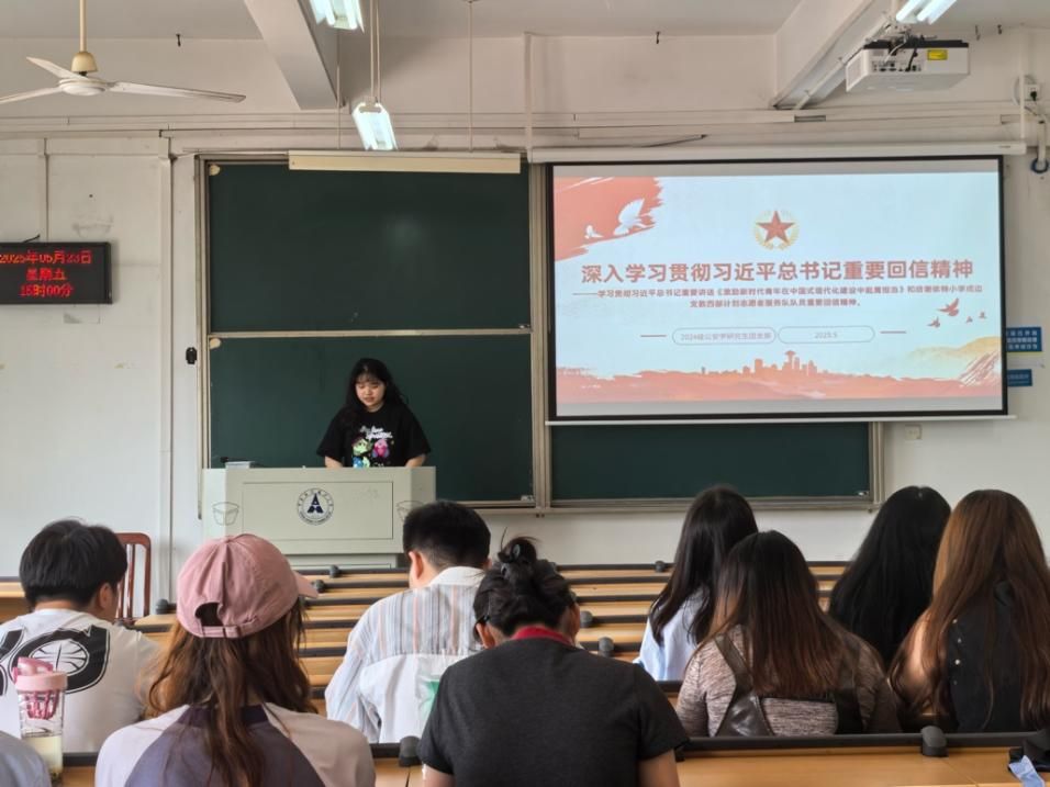 活动伊始,团支书严旖旎向全体团员深入阐述了本次学习活动的重要意义。希望大家通过此次学习,将回信内容融入日常思考与行动,主动探寻与自身学习、实践的结合点,在感悟中思考,在思考中践行,逐步明晰个人成长与时代发展的紧密联系。
